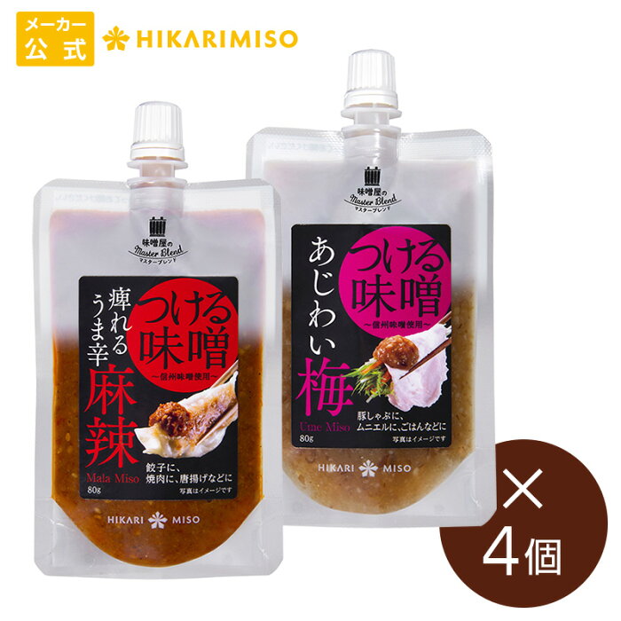 ひかり味噌 味噌屋のマスターブレンドつける味噌 麻辣 80g+梅80g(各4袋)味噌 みそ 調味料 万能調味料 化学調味料不使用 うま辛 焼肉 餃子 唐揚げ 梅 うめ 豚しゃぶ ムニエル ごはんのお供 まとめ買い