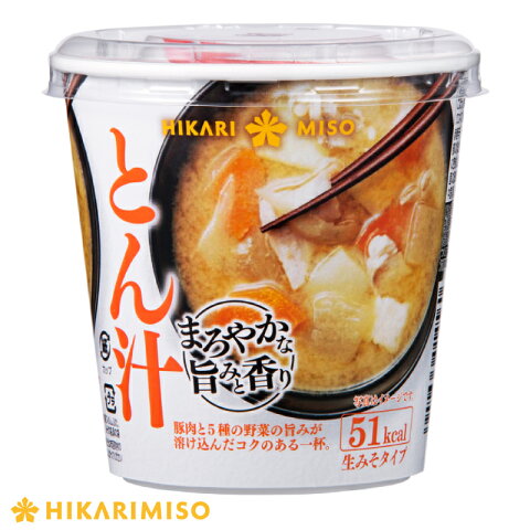 商品情報 ●とん汁 内容量:52.8g(1カップ) 原材料: 具[じゃがいも、豚肉、にんじん、大根、玉ねぎ、ごぼう、植物油脂、食塩(一部に大豆・豚肉を含む)] 調味みそ[米みそ(国内製造)、砂糖、食塩、ポークエキス、香味油、たんぱく加水分解物、ごぼうエキスパウダー、かつお節粉末、野菜抽出物、(一部に乳成分・小麦・大豆・鶏肉・豚肉・ゼラチンを含む)] ●あさり 内容量:調味みそ 15.4g、具(殻付きあさり) 5粒(1カップあたり) 原材料: 具[殻付きあさり(中国産)] 調味みそ[米みそ、食塩、果糖ぶどう糖液糖、魚介エキス、あさりエキス、たんぱく加水分解物、昆布エキス/調味料(アミノ酸等)、酒精(一部にいか・大豆を含む)] ●しじみ 内容量:44.3g(1カップあたり) 原材料: 具[殻付きしじみ(中国産)] 調味みそ[米みそ、豆みそ、食塩、砂糖、あさりエキス、たんぱく加水分解物、かつおエキス、貝エキス/酒精、調味料(有機酸等)、香料、(一部に小麦・えび・かに・大豆を含む)] ●なめこ 内容量:43.6g(1カップあたり) 原材料: 具[なめこ(中国産)/酸化防止剤(ビタミンC)] 調味みそ[米みそ、豆みそ、砂糖、食塩、かつおエキス、発酵調味料、宗田かつお節粉末、かつお粉末、昆布エキス、煮干し粉末/酒精、調味料(アミノ酸等)、(一部に大豆を含む)] 具の殺菌方法:気密性容器に密封し、加圧加熱殺菌 賞味期限:製造日より8ヶ月 保存方法:直射日光、高温多湿を避け、常温で保存してください。