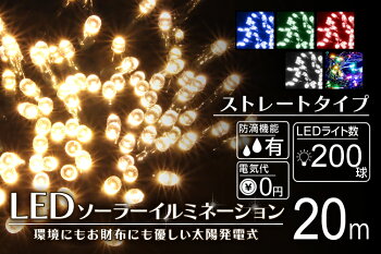 イルミネーション 屋外 ソーラー 防滴 200球 20m LED 充電式 全6色 LEDイルミネーション ソーラーライト イルミネーションライト ガーデンライト クリスマス ハロウィン 飾り 電飾 おしゃれ かわいい
