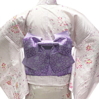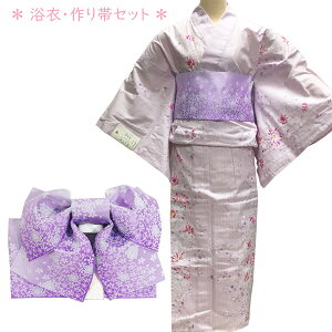 浴衣 作り帯 セット 女性用 No.07 ピンク 花柄 薄紫 桜柄 2点セット レディース 在庫処分品 【宅配便】