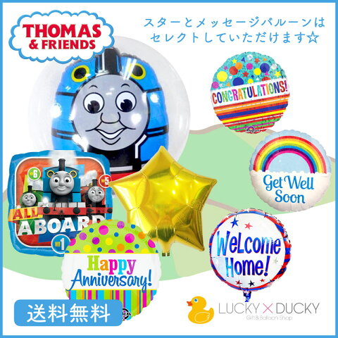 セット内容1.トーマス ダブルバルーン (H約55cm/W約55cm)x1個 2.メッセージバルーン (W約45m/H約45cm)x1個 3.スターバルーン (W約38m/H約38cm)x1個 4.トーマスバルーン18インチ (W約45m/H約45cm)x1個 全部で4個のバルーンでお届けいたします。