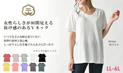 メール便対応 大きいサイズ レディース 半袖 Vネック Tシャツ インナー トップス カットソー 無地 フィットネス スポーツ ジム ヨガ cotton100 LL 3L 4L 5L 6L 黒 白 紫 黄 緑 ピンク パジャマ ムールウェア コーデ 着回し 春 夏 秋 冬
