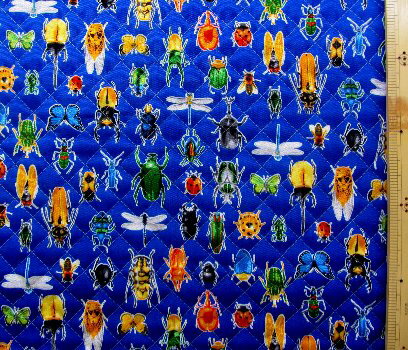 Q-プリント キルティング ( キルト ) 生地 昆虫 大行進( 花紺 ) ( カブト虫 クワガタ トンボ ちょうちょ セミ てんとう虫 リアル柄 カッコイイ 男の子 子供 入園 入学 )