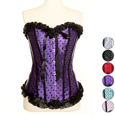 オーバーバスト コルセット 編み上げ ビスチェ ポップでキュートな☆ドットコルセット[sl5147/ev5147](ホワイト/ブラック/レッド/パープル/ブルー/ピンク)ダイエットや腰痛に補正下着でくびれGet♪【t-48】