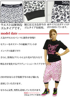 メーカー希望小売価格はメーカーカタログに基づいて掲載しています●SHOOWTIME(ショウタイム) サルエルパンツ 人気のサルエルパンツに新作が登場!!セクシーなキスマークの総柄プリントがインパクト抜群です!!さらに、特殊なプリントにより光の当たり方で明るさが変化するグラデェーション・タイプです!! 2XSやXSなら小学校低学年のお子様にも着用していただけます。
